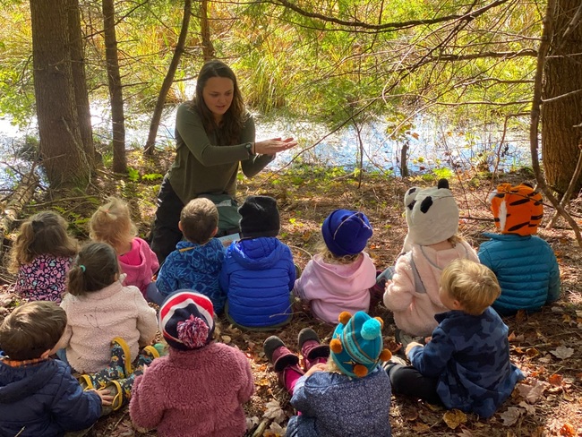 Apple Tree staff member and outdoor educator Kendra McGuire leads Nature Discovery sessions with all age groups. Apple Tree is fortunate to be situated on the Stowe recreation path, and just beyond are streams, fields and forest to discover. Kendra joins each class to venture beyond our playgrounds and into the natural backyard. Every other week they explore a natural space and learn together, following student interest. Children will have opportunities to learn about local plants, animals and get plenty of exercise outdoors. The environment is a natural playground and children are encouraged to investigate this world through play. Teachers guide learning through songs, stories, and games to spark curiosity.